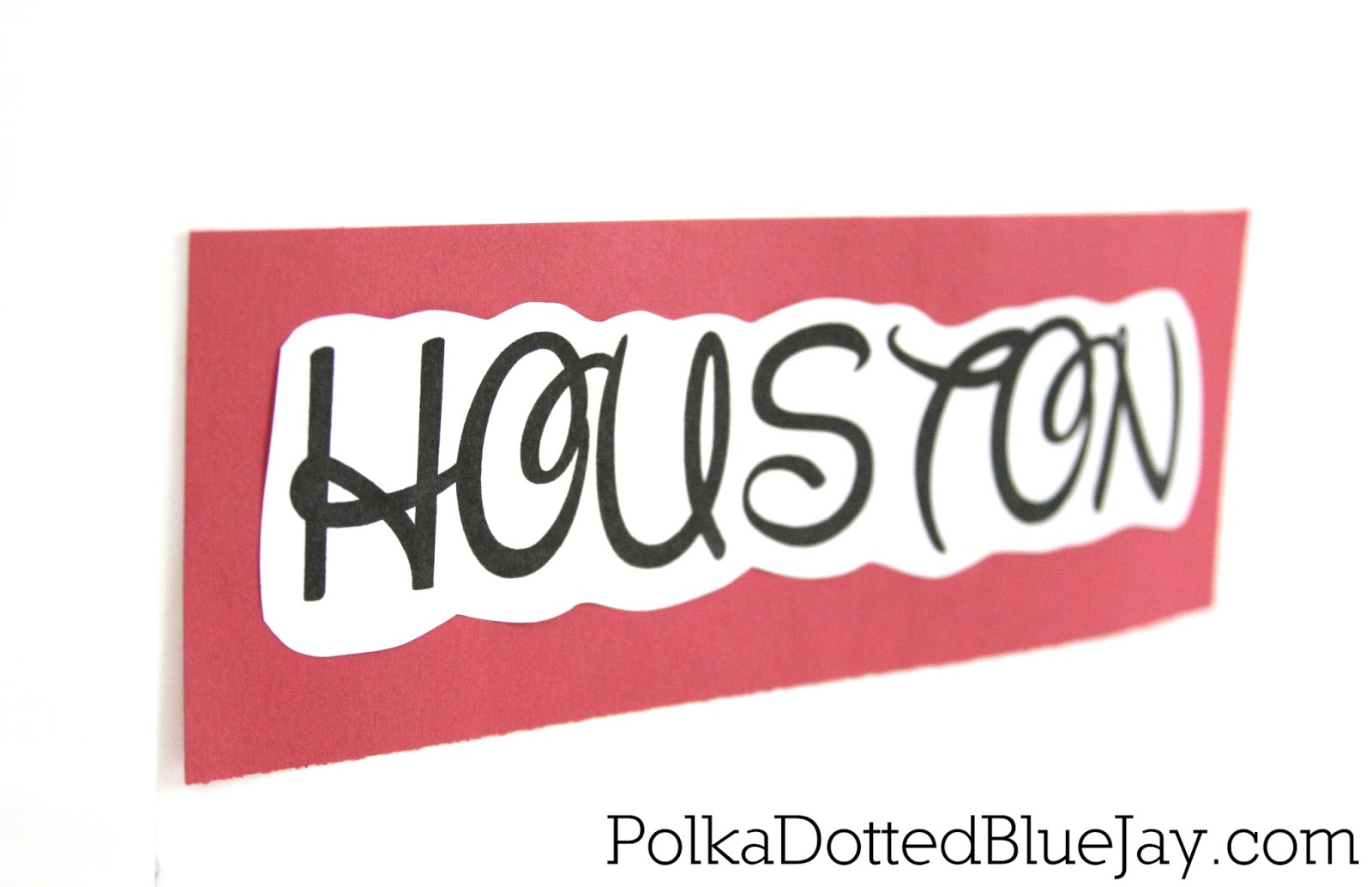 The first thing I did was print HOUSTON on white paper in the Waltograph font and then I cut around the letters with my scissors to give it a fun “bubble” look.